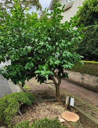 2025年10月16日 12時00分我が家の近くに道路に植えられたレモンの木がある。もう20年以上前に近所の方が植えたとされる木で、歩道から車道側に張り出した花壇のような地面に、他の大きな街路樹の傍らに植えられている。 今年の5月、突然その木に町田市の道路部名で「町田市の管理する道路に無断で植えられたこの木を6月13日までに撤去するように。撤去されない場合は町田市が処分します」との「お知らせ」が貼り出された。 この「お知らせ」に近隣の住民は驚いた。この木には毎年夏の終わり頃に立派なレモンが沢山実り、楽しみにして大切にされている木だからである。近所の住民は「どうして伐る必要があるのかしら?」「可愛い木なのに可哀想」など伐られることを惜しむ声がたくさんあった。 私も同感だったので、6月の初めに町田市宛に何とかこの木を伐らずに残して欲しいという「お願い」の札を作りレモンの枝にぶら下げた。他の方もレモンの延命に手を尽くしてくれた。間もなく、「今シーズンは伐られることはないようだ」とのうれしいうわさが届いた。心配した6月13日には何事も起こらずに過ぎたが、8月のある日、気が付くとレモンの木の横に大型のクレーン車が停まり、数名の作業員 の姿があったので、あわてて駆け寄り「レモンは伐らない のでしょ?」と聞くと「ええ、伐りません」とのことだった。